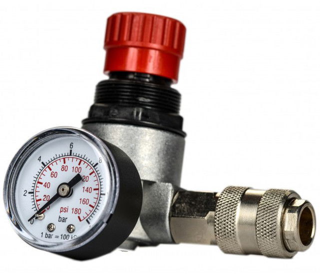 - A nyomásszabályzó manométert és gyorscsatlakozót tartalmaz.