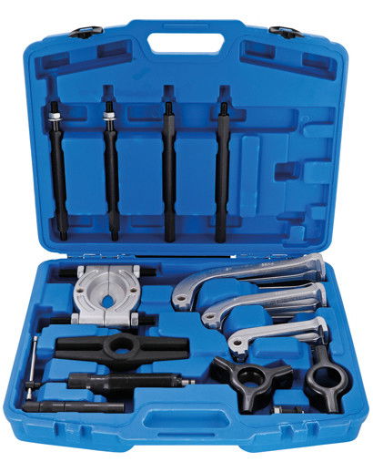 - 25 darabos, két- és háromkörmös, hidraulikus csapágylehúzó és csapágyszétválasztó készlet kék kofferben.