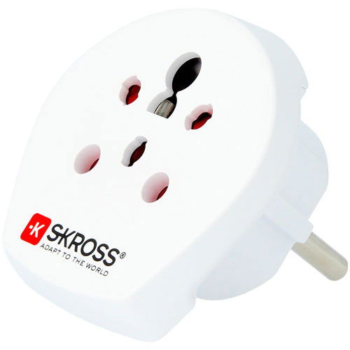 Hálózati csatlakozó átalakító Dániából, Indiából és Izraelből Európába utazóknak, földelt.