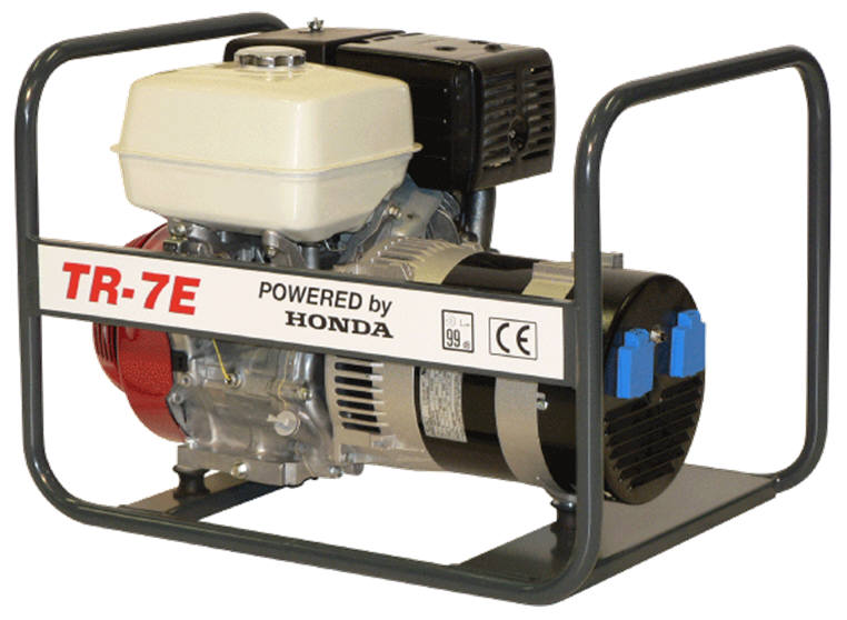 A HONDA benzinmotoros áramfejlesztők kiválóan alkalmasak építési munkahelyek áramellátására, hálózati feszültség pótlására. A HONDA benzinmotor igen hosszú élettartamot és gazdaságos üzemeltetést biztosít. Kedvező az üzemanyagfogyasztása, csekély a karbantartási igénye, valamint a szerviz- és alkatrészellátottság is kiváló. Üzemanyaga 95-ös oktánszámú ólommentes benzin, a fordulatszám 3000 /perc. A fogyasztási adatok teljes terhelésre vonatkoznak, a gyakorlatban a fogyasztás a megadatoktól lényegesen kisebb. A gép alapkeretre szerelt, burkolatlan kivitelű. A zajszint 95 dB alatt van. A védettség IP23.